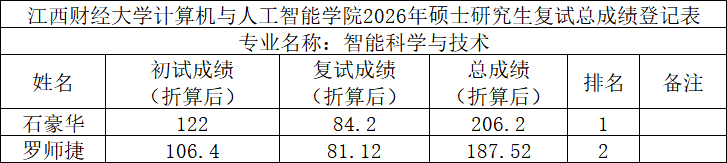 江西财经大学皇冠博彩 2026年硕士研究生复试总成绩公示
